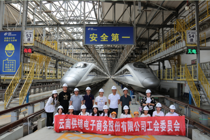 中午,参观完机务段后,全体员工赴昆明车辆段动车所,在观景台鸟瞰存车线上一列列整装待发的“高铁航母”动车组;通过参观动车组检修库,了解检修库三层作业平台的用途,观看动车内部设施;到高铁模型室观摩各个时期的精致火车模型,并亲身体验动车组仿真实训室动车模拟驾驶;到高地参观新华门的红墙、典型示范区、井冈山的学习区、西柏坡的座谈区、宝塔山的阅读区、警示教育区等展区,观看云南铁路发展史视频,听动车所工程师对动车发展史、动车型号区分、运行原理、安全知识等的生动讲解,最后参观象征云南铁路从米轨到高铁时代百年约定的106广场。